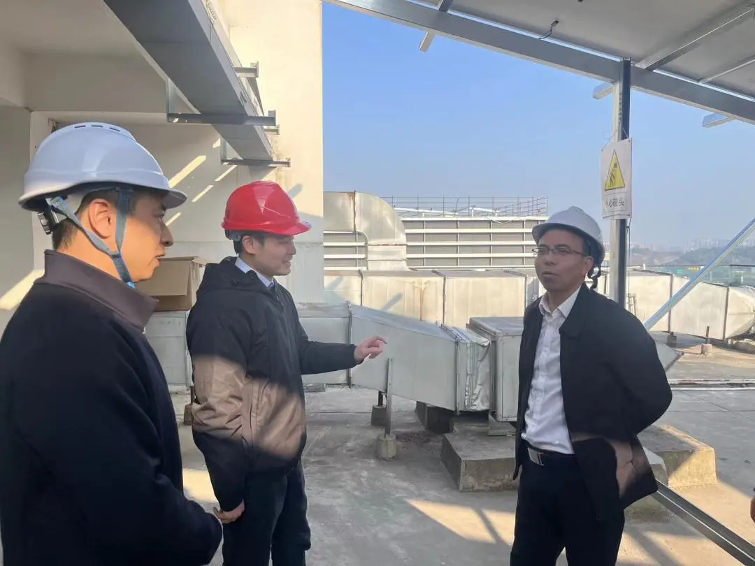 在创谷产业园屋顶光伏项目,督查组对光伏版安装、输变电设施、安装设施、用电情况进行重点检查,并就后续材料吊装、现场安装作业工作进行督导。