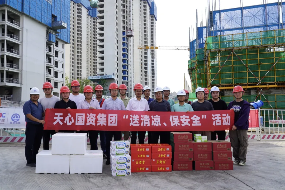为关怀一线施工人员,保障项目安全有序推进,8月27日下午,天心国资集团组织开展“送清凉、保安全”高温慰问活动暨安全生产大巡查。集团党委副书记、副总经理陈志刚,集团党委委员、副总经理杨龙带队深入天心公办养老福利中心项目、天筑六建光伏项目、天序1958项目等在建项目现场,为一线员工送去清凉和关怀,并对项目进行隐患排查和安全生产工作指导。