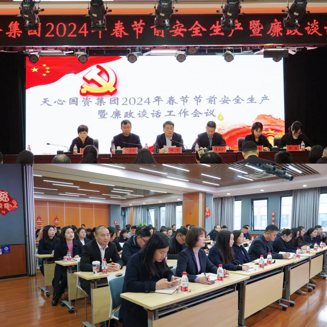 2月8日上午,天心国资集团组织召开2024年春节前安全生产暨廉政谈话工作会议,集团班子成员、全体员工及子公司主要负责人参加。