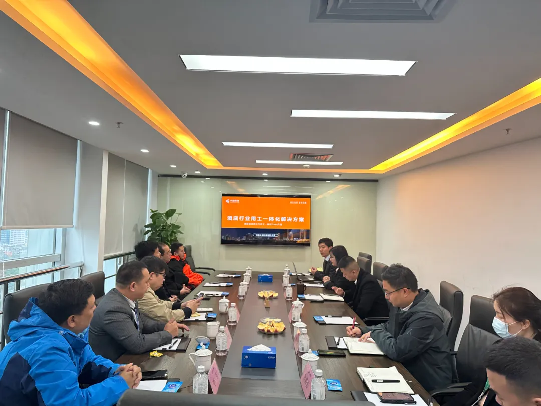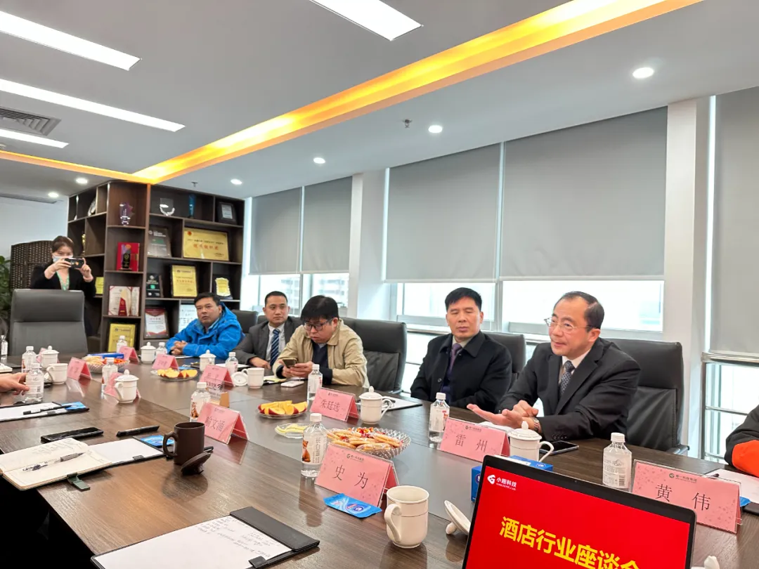 2月28日,原花园酒店党委书记、副总经理雷州等考察团一行莅临湖南小翅科技有限公司广州分公司进行考察交流,小翅科技副董事长喻文涌陪同调研,并与考察团一行交流座谈。