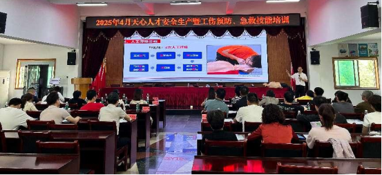 2025 年 4 月 28 日下午,一场意义重大的安全生产暨工伤预防、急救技能培训活动在长沙市天心区黑石铺街道党校顺利举行。此次活动由长沙市人力资源与社会保障局、长沙市天心区人力资源社会保障局指导,湖南省天心人才集团有限公司(以下简称“天心人才”)主办,长沙市天心区黑石铺街道办事处协办,旨在深入贯彻安全生产方针,提升员工安全意识,传播工伤预防知识,推动企业安全文化建设。