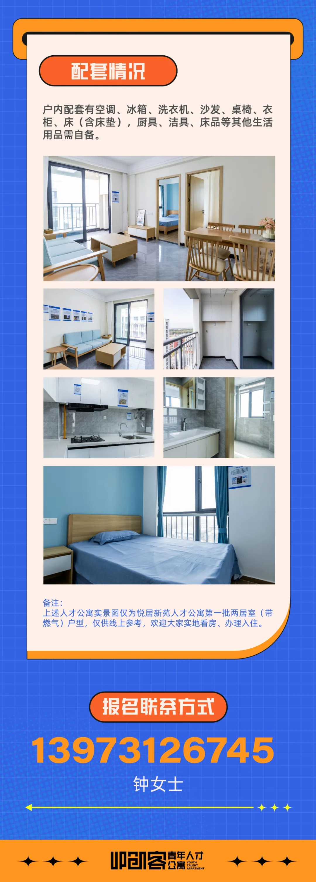 本次招募提供60套房源(单身公寓22套、一居室6套、二居室32套),提供三年最高免租6个月的入住优惠,请有意向的人才于6月30日前在手机或电脑端点击报名链接或扫描二维码进行报名登记。